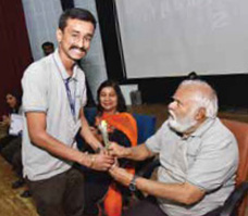 Pratik Anjikhane being felicitated by Dr. (Col.) A. Balasubramanian, Founder President, Sri Balaji SocietyHis college was practically a platform that made him corporate ready. Although he was an average student, Pratik was good in communication, which plays a crucial role in character development. He was soft-spoken, well read, someone who was sure of what he was doing. His deep understanding of certain elements shaped him to be a better learner.