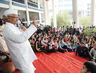 Inspiring the Gen NextFrustration comes to those who do not stand by values and principles and for those who have a herd mentality. If you have a proper aim and focus in life, you can never get frustrated; you can learn to conquer even death. When I was 25 years old, I must confess that I too went through depression and wanted the right answers for purposeful living. While my mother instilled the correct values during my childhood, I wondered why, as a young man, everyone is in the rat race, running the whole day and acquiring materialistic pleasures. Some not only possess their wealth but also grab that of others too. I had thought of committing suicide, but one day I stumbled upon Swami Vivekananda’s book at the Delhi Railway Station. It helped me understand that human birth is given to work for society and the nation. He mentioned that there would be humiliation and much struggle, but one must carry on relentlessly in one’s mission. Consider the village to be your temple, the public as the be-all and end-all and serving it is akin to worshipping God. With these values strongly etched in my mind, I never get frustrated with any number of agitations. Due to my persistent campaigns, many good laws like the RTI Act, the Gram Sabha Act and so on came into force. I get immense happiness when people benefit from my campaigns.